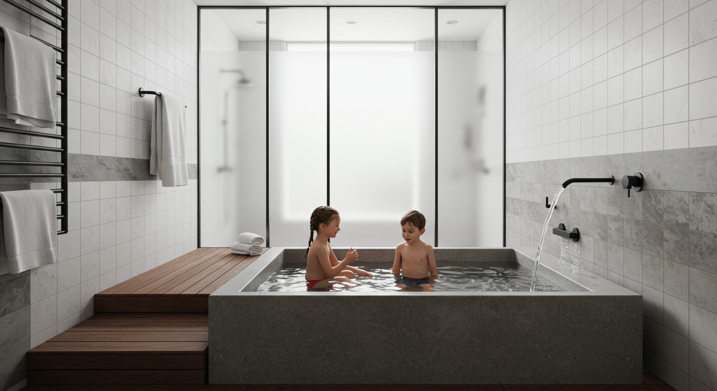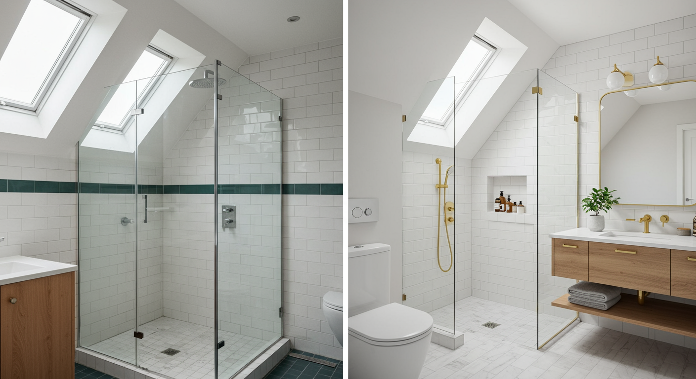 Tubs are practical on so many levels, especially if you have little ones in the house. But when combined with a shower, the result often comes out looking like the “before” scenario above: minuscule and dingy. Investing in a graphic tile surround and a deep soaking tub can change all that. In this Los Angeles home, designer and architect Susan Nwankpa Gillespie covered the interior shower walls with a combination of two Zia Tile hues (Rouge and Casablanca) and clad the facade in amber zellige tile.