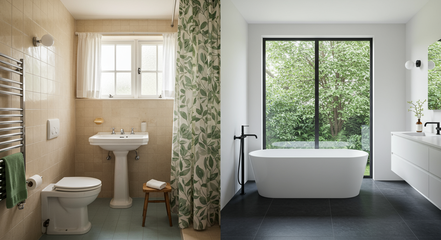 Meet Leanne Ford’s quick fix for a dated bathroom. The DIY relies on SureCrete, a type of cement-based overlay, which can be applied directly onto an existing surface and made waterproof with a concrete sealer.