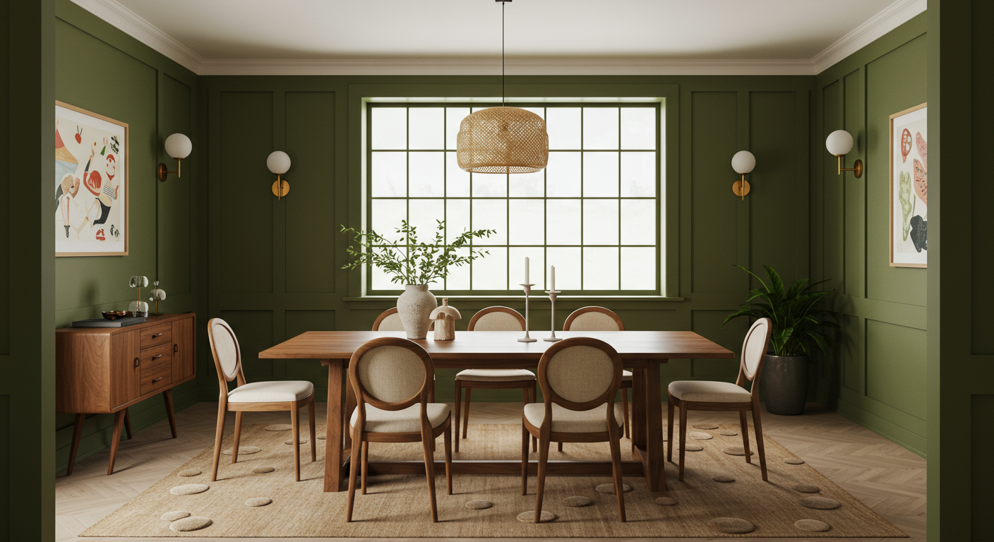 Paying homage to a home’s history is never a bad idea, so long as you’re drawing in some modern elements to take it out of the dangerous dated territory. A medley of woods, from the dining table to the chairs, play off the original base trim, while the earthy rug underfoot makes the green hues on the walls and ceilings pop. “Mixing woods adds that extra layer, making a home feel more storied and less like everything was bought in the same decade, let alone the same year,” Sarah explains.