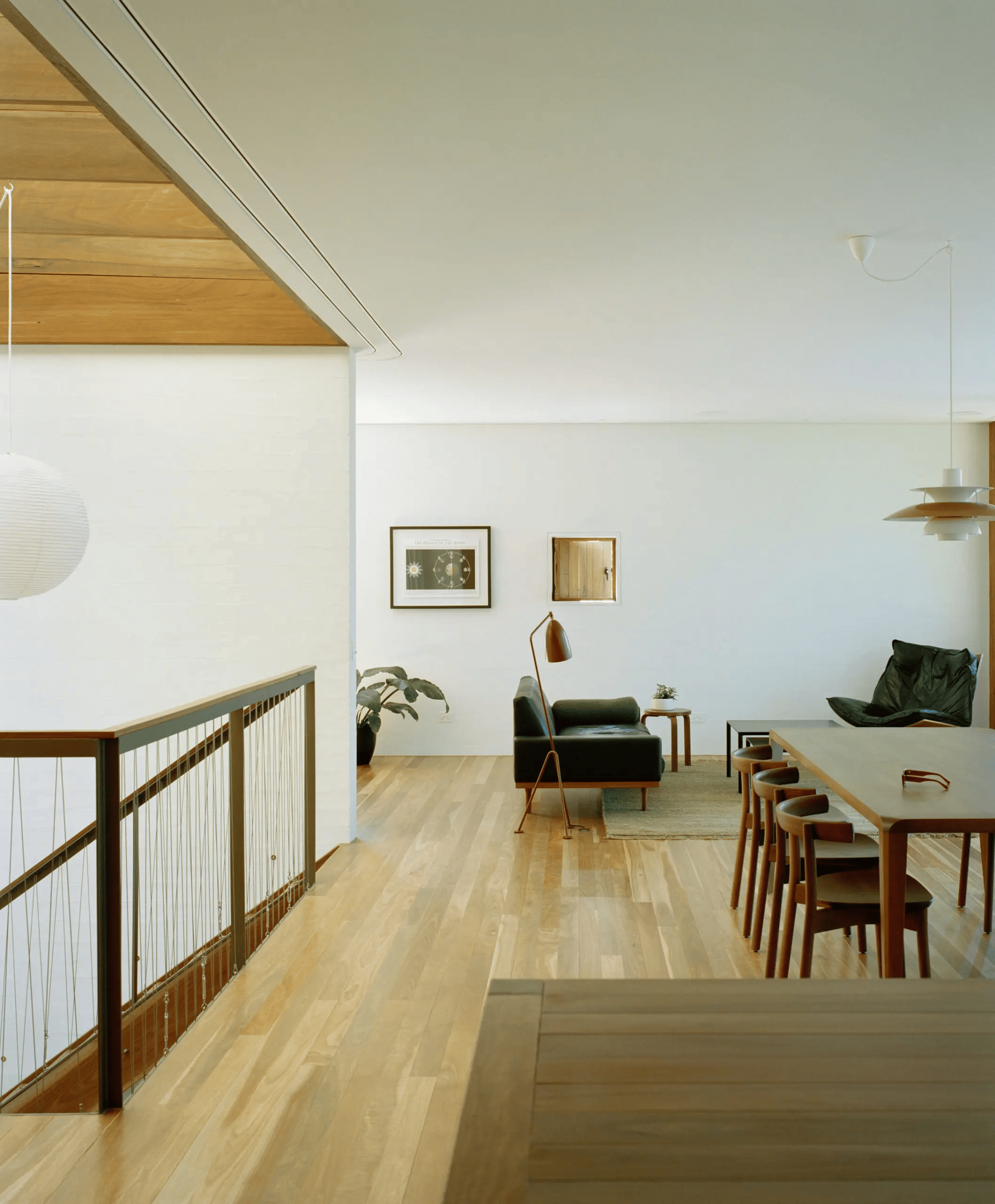 The house was pared back to its essential shell, allowing the interior to be reshaped around new patterns of living. Rooms were reorganised for better connection, and daylight was brought deeper into the plan.