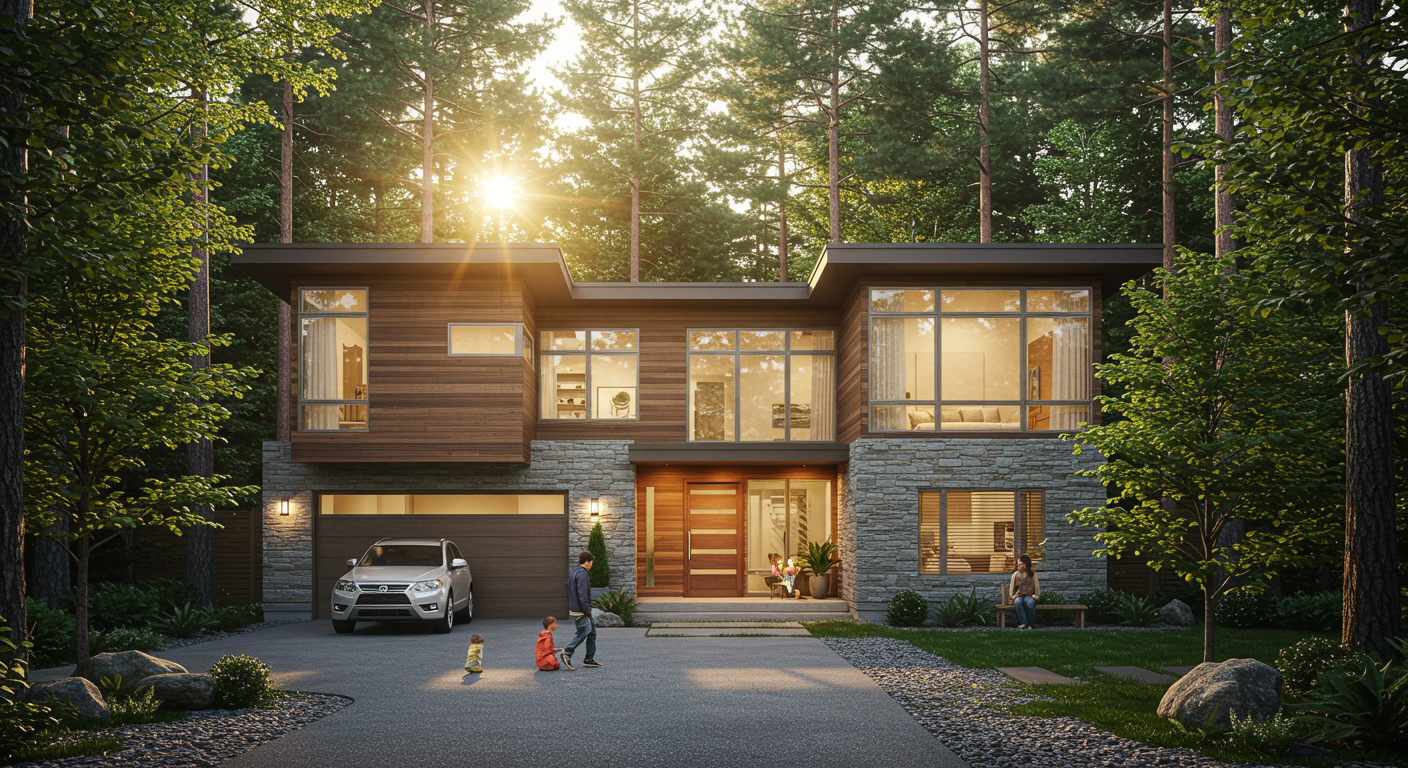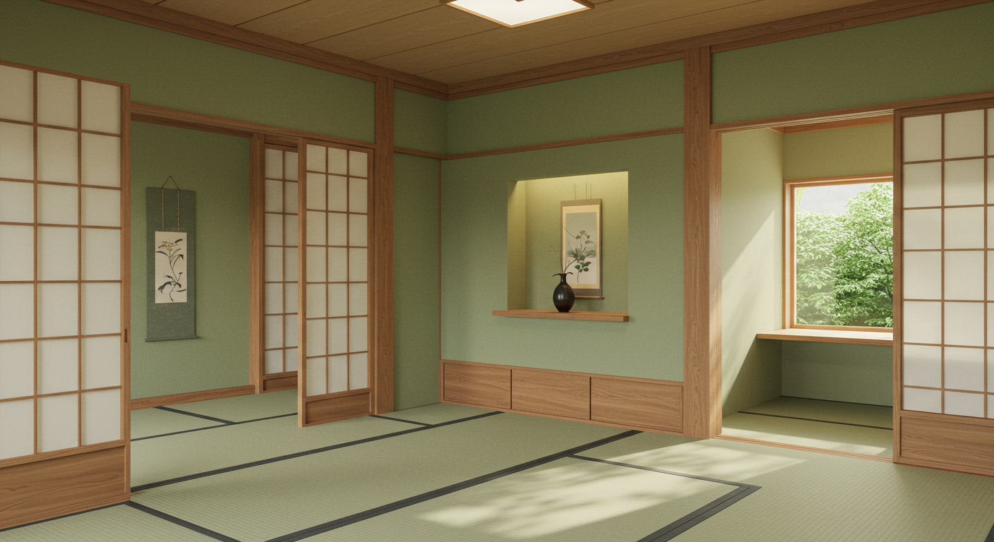 The “floating” rectangular-box structure and simple lines of the house perfectly matched the clients’ design sensibilities and wish list. They envisioned a teppanyaki-cooking island in a kitchen that opened to the living room, a narrow engawa-like deck along the back of the house, a primary bathroom with a deep ofuro-type soaking tub, a tatami guest room, and a patio large enough to play ping pong