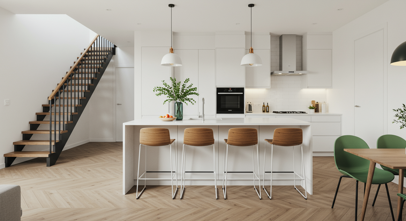 The size and shape of the lot created some architectural obstacles, preventing Colby from utilizing natural light directly into the kitchen—a key way to achieve the clean and bright aesthetic the homeowners were after.