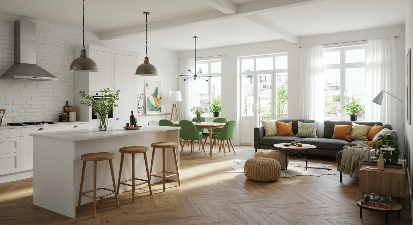 Because the dining room and living room are found just off the 315-square-foot space, it was key to create a cohesive, yet distinct, flow among the areas.
