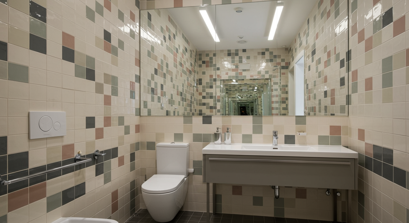 Don’t be afraid to experiment with color in your bathroom tile project. “In this bathroom, we played with the colorful tiles and grout inversion and the mirror infinity effects,” says Laurence Beysecker, design director at Maison Amarande in Lisbon, Portugal. “It creates a joyful and warm feel.”