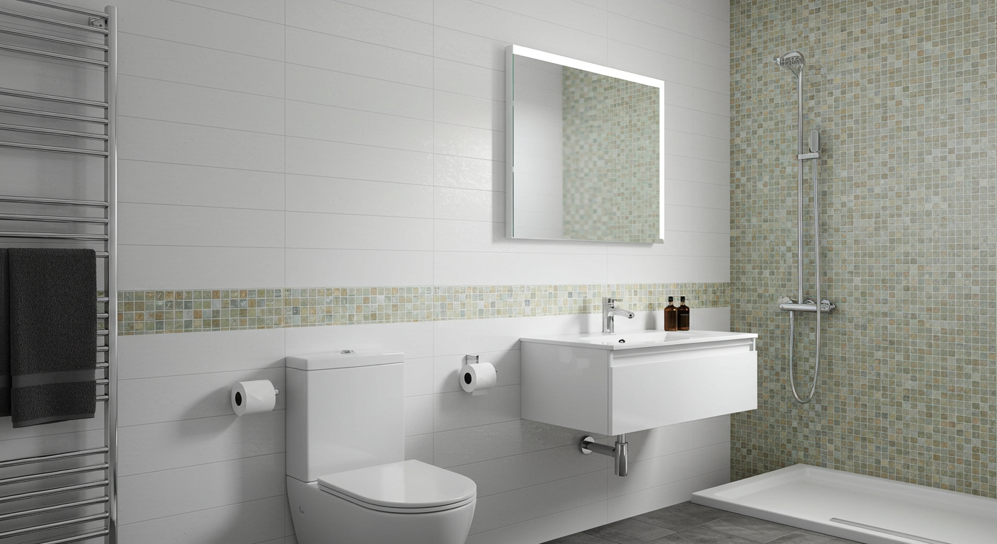 Tile can be used creatively to make an impact and doesn’t even have to be expensive. “Consider mixing large-format basic tile with a fun smaller mosaic tile, rather than using one tile everywhere,” recommends Brown. “Contrast in size and color instantly gives a bathroom more depth and interest.”