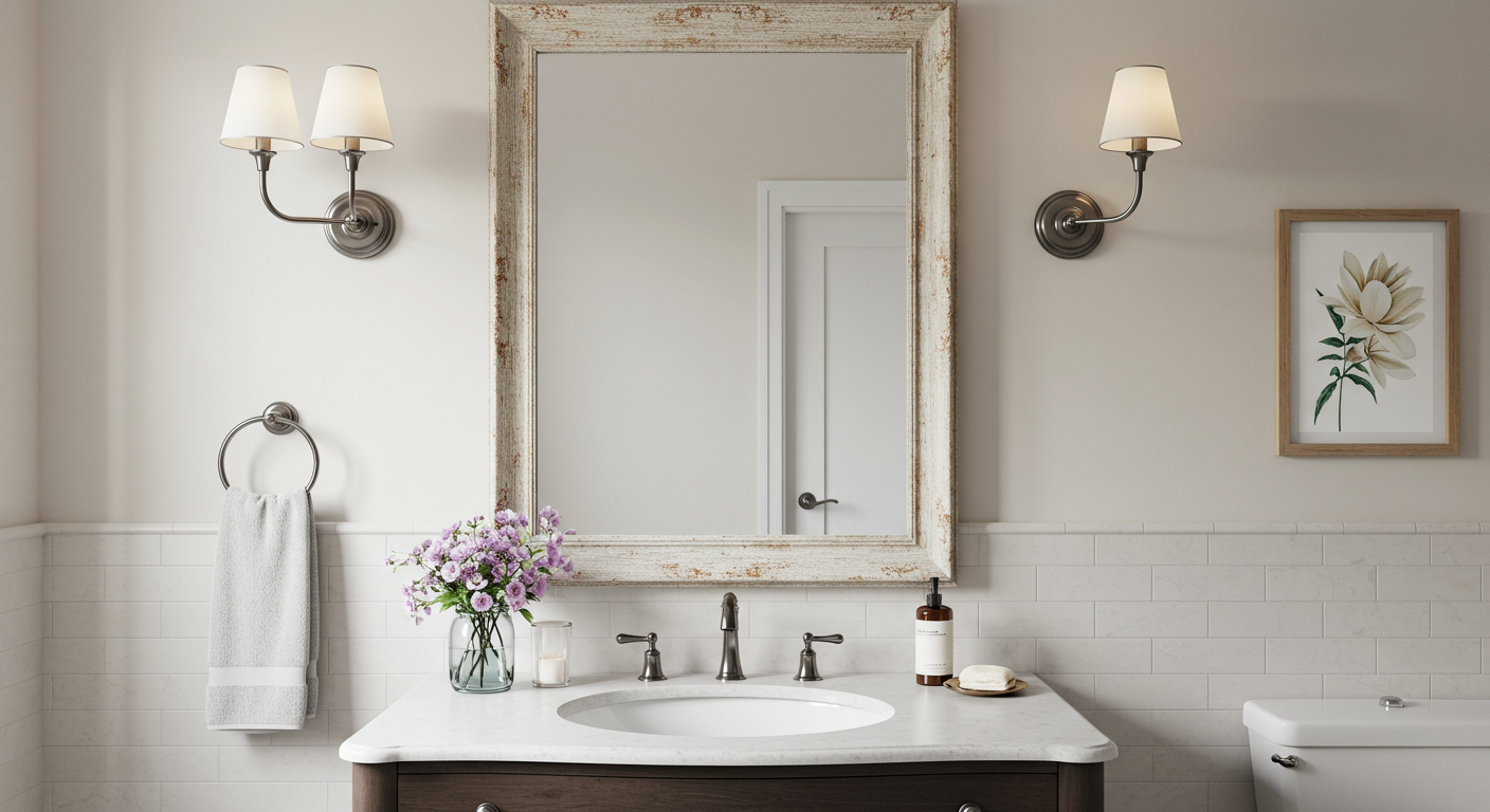 According to Josie Abate, founder of Ambience Design Group in Woodbridge, Ontario, mirrors can also make a small bathroom seem larger. “If you’re going for a more traditional look, consider purchasing a framed mirror with an ornate border or elegant frame,” she says, “which will look great in almost any setting.”