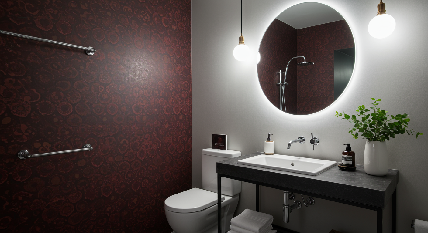 Esther Dormer agrees that changing the paint color can transform the bathroom. “Add either an accent wall or create a two-toned wall with a darker color on bottom and a lighter color at top”, she says. “Keep within the colors of the house but go a few shades darker, which will add drama and give it a fresh feel.”