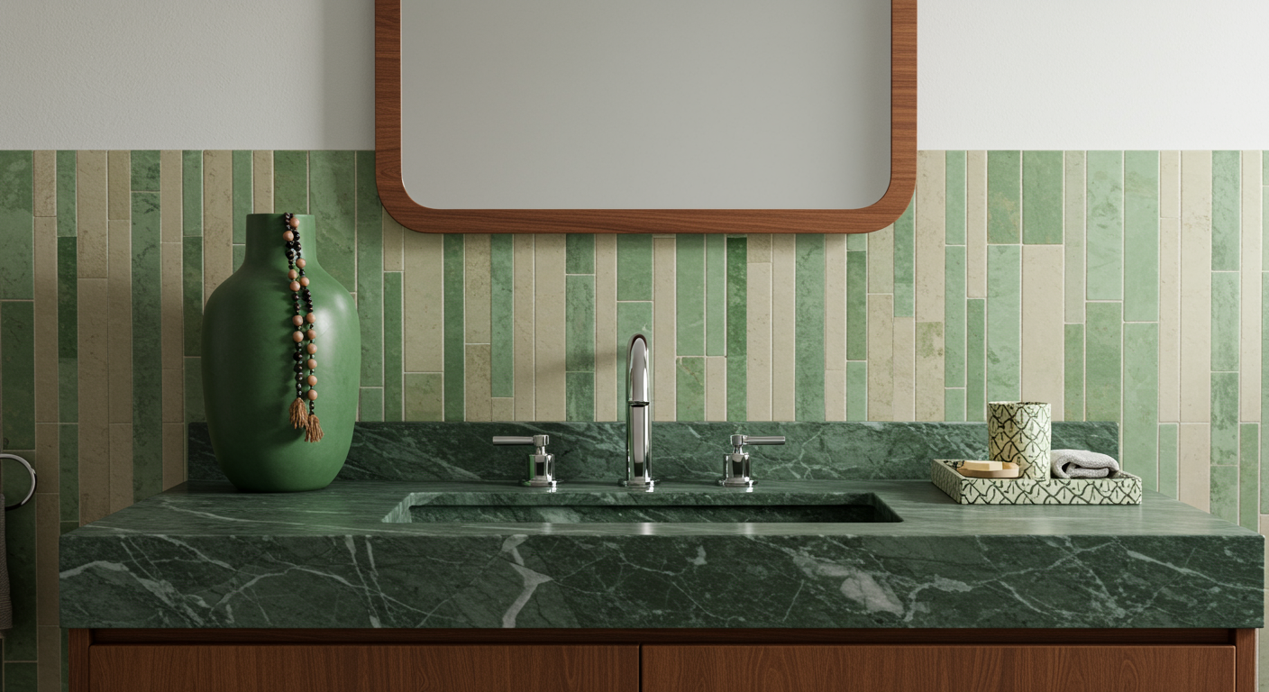 Because the home sits on top of a hill, it is surrounded by lush greenery that makes it feel like a hilltop oasis. The designers wanted to open up the home to bring in light and reflect the color and texture of nature. They sprinkled elements throughout the home as a nod to the mid-century design aesthetic including their tile selection, hardware, lighting design, furnishings, and accessories. We chatted with Hollis and Jordyn to find out more about this project.