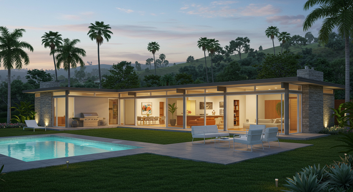When looking to buy a midcentury home it is helpful to know which designers you like and the neighborhood in which you’re looking. Some neighborhoods are saturated with midcentury homes by known designers of the 1960s. The key elements that make up a midcentury home are floor-to-ceiling expansive windows, lighting, integration with natural elements, stone, wood, and geometric clean lines.