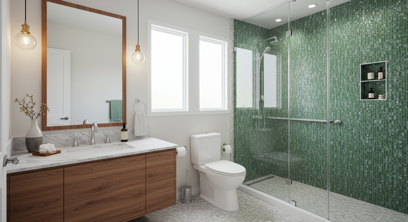 We like to stay true to the design traits of mid-century design. To honor that we wanted to make sure that our color palette, materials, and fixtures all paid homage to the elements of nature surrounding the home; pulling the outside into the space.