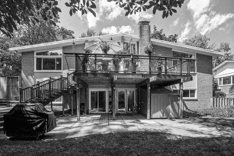 The back of the home had a full renovation—a new deck, screened-in porch and patio. The stairs were relocated to allow for a larger deck space. Although most of the area was redone, the original brick siding was kept in order to balance the old with the new.