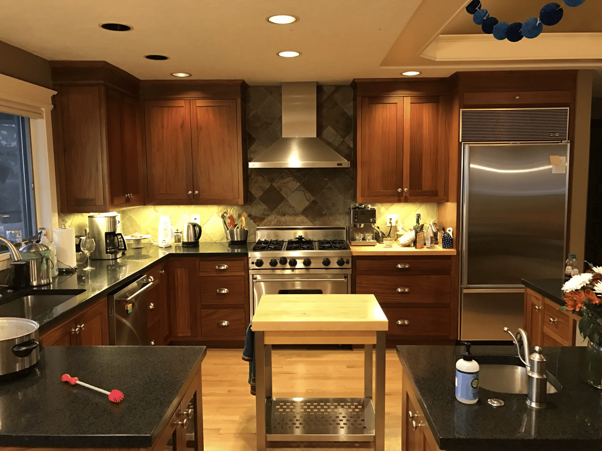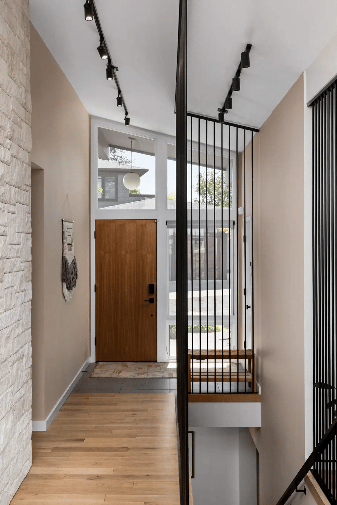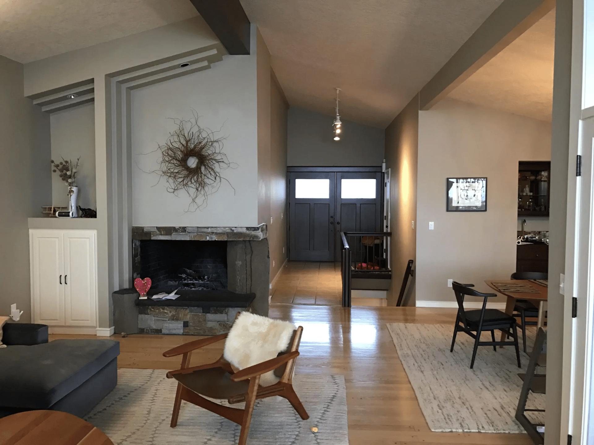 The entry was the first space to change. In its original form, the front door felt compressed by the tight hillside setting. PKA introduced a new entry overhang that provides shelter and creates a more defined moment of arrival. A lush vegetative buffer softens the edge between house and street, adding greenery where space for landscaping was limited. The result is a small but meaningful transition from road to home.