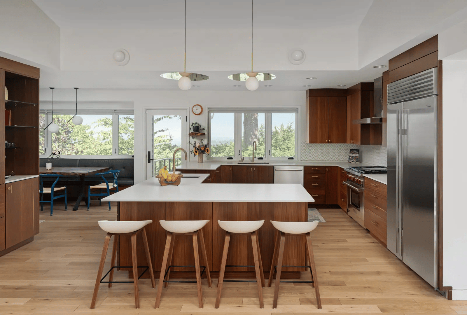Durable exterior materials were chosen to withstand the Pacific Northwest climate. Together with a refreshed façade, they give the house a renewed presence while ensuring it will age gracefully over time. The result is a careful balance: a mid-century home restored with respect, and gently adapted for the rhythms of contemporary living.