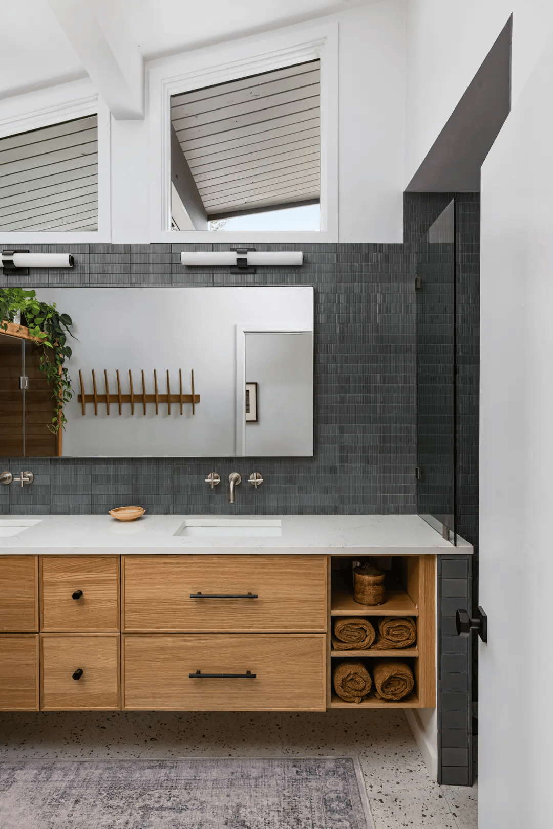 One of the most impactful changes is a new stair that improves circulation between levels. Carefully integrated into the plan, the stair also incorporates additional storage, solving two challenges at once. Throughout the house, smaller updates continue this practical approach: improved lighting, new cabinetry, and the addition of a lower-level bathroom all help the home function more smoothly.