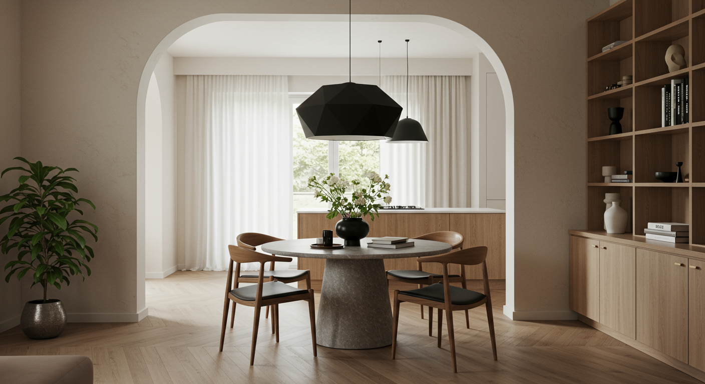 To give the dining room some Spanish flair, Twiehaus replicated the cove ceiling from the living room in this area, too. The curved edges felt like a natural starting point for new plaster shelves, coated in a custom hue by Sydney Harbour. And knowing her client would want to stash board games and lesser-used cookbooks out of sight, she added striped fabric panels along the base. The designer’s go-to curtain maker customized the skirt, but Twiehaus suggests it’s easy to re-create with tension poles and some sewing tape.