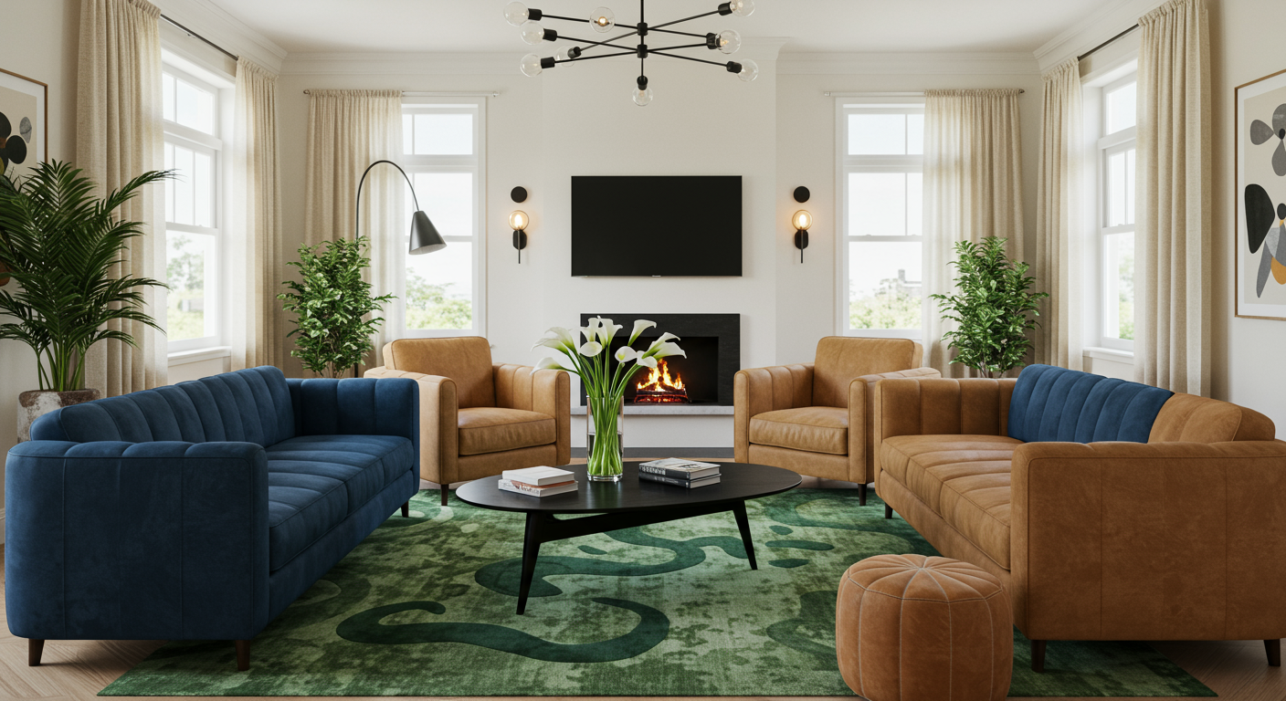 In order to squeeze a contemporary black tub from Signature Hardware into the home’s only bathroom, Twiehaus stole some space from the guest bedroom closet. In a game of Tetris, she situated the 66-inch-long tub perpendicular to the double-sink vanity topped with blue-green quartzite. The designer continued the travertine theme from the living room in this space in the form of fluted shower tile and mosaic floor tile, both from Clé Tile.
