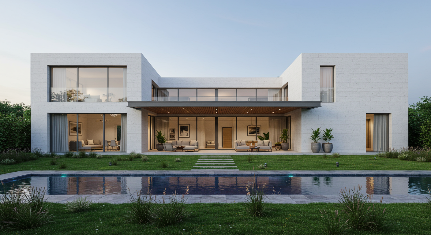 A massive wall, clad in Petersen Kolumba brick, runs the length of the site, acting as interior and exterior feature which divides the program between public, open spaces, and private, intimate spaces.