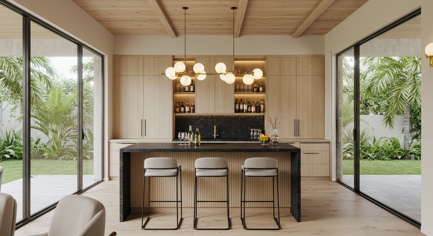 Speaking of cozier rooms, the size of a space is another element to consider before installing coffered ceilings. “In more compact rooms or spaces with lower ceilings, a coffered design might make the room appear cramped; however, if executed correctly, it can draw the eye upward and create a layered, visually captivating effect,” says Ivan Pineiro of Pimell Interiors in Las Vegas. Which brings us to the next question….
