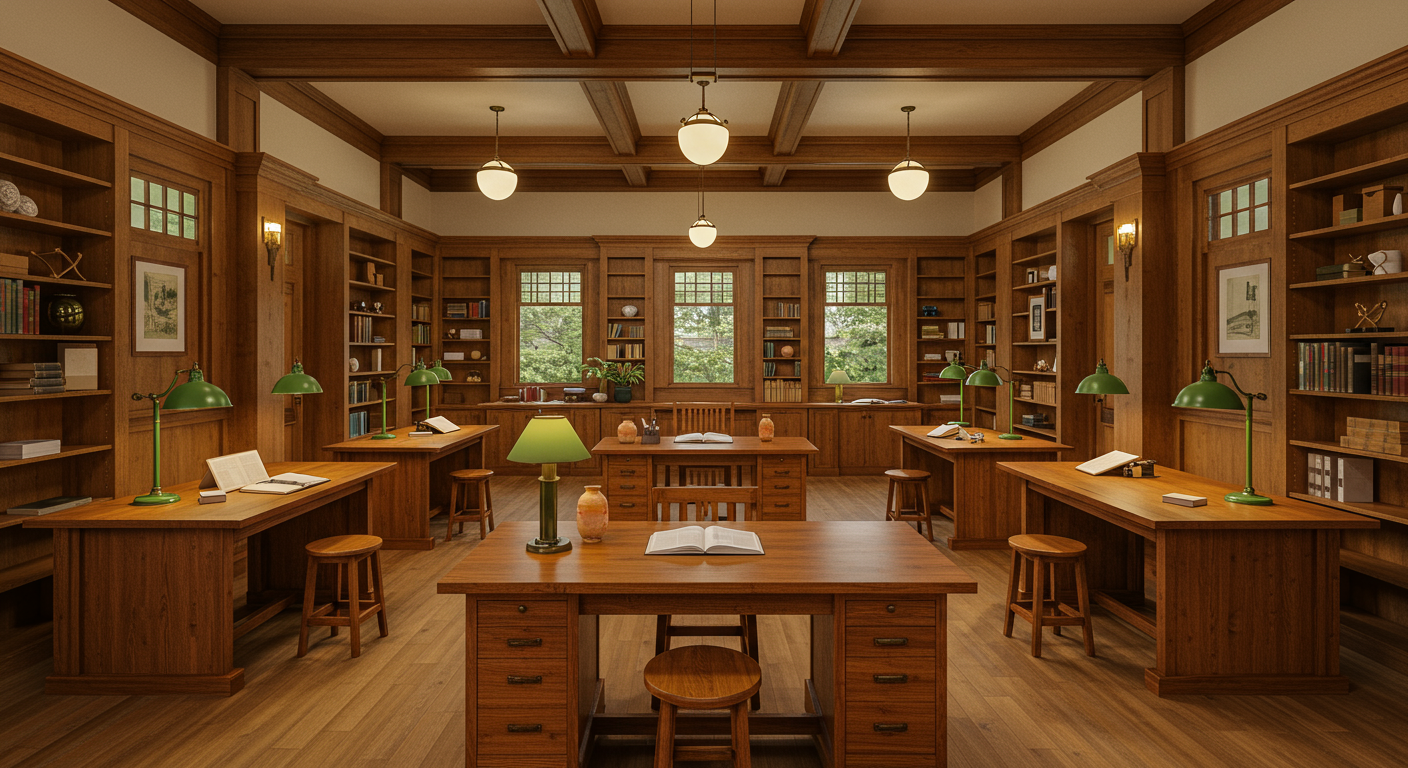 Interior design inside Frank Lloyd Wright’s Home and Studio