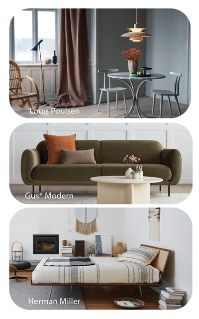 Layer Textures: Layering materials and textures can add contrast, depth and visual interest. “Layering of fabrics, jutes, linens and faux leathers all sustainably sourced are great ways to incorporate (mid-century modern design),” says Segodnia.