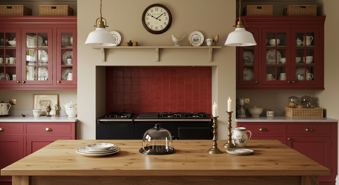 We smell something burning in the kitchen—and it’s not cookies. It’s the good kind of fiery: red kitchen cabinets.