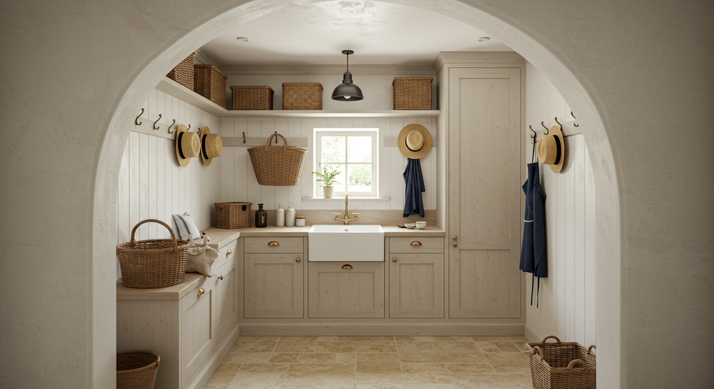 But with modern farmhouse style, that purpose has extended far beyond the kitchen. “There’s a lot of focus on what were once back-of-house rooms,” says Emma. “The laundry room, the pantry, a walk-in larder, the boot room – or ‘mudroom’ as it’s known in the US – and maybe even a flower arranging room have all become as important to the scheme as any of the formal rooms, and have become designer spaces.” While a large country house would have these rooms anyway, a Victorian or Edwardian terrace wouldn’t – but space is being found for them by way of clever configurations of layout, and “well-planned fitted joinery,” says Emma. For example, Buchanan Studio created a pod for their laundry room and pantry within their large, open-plan kitchen; in other cases, extensions are being planned precisely for these service rooms.