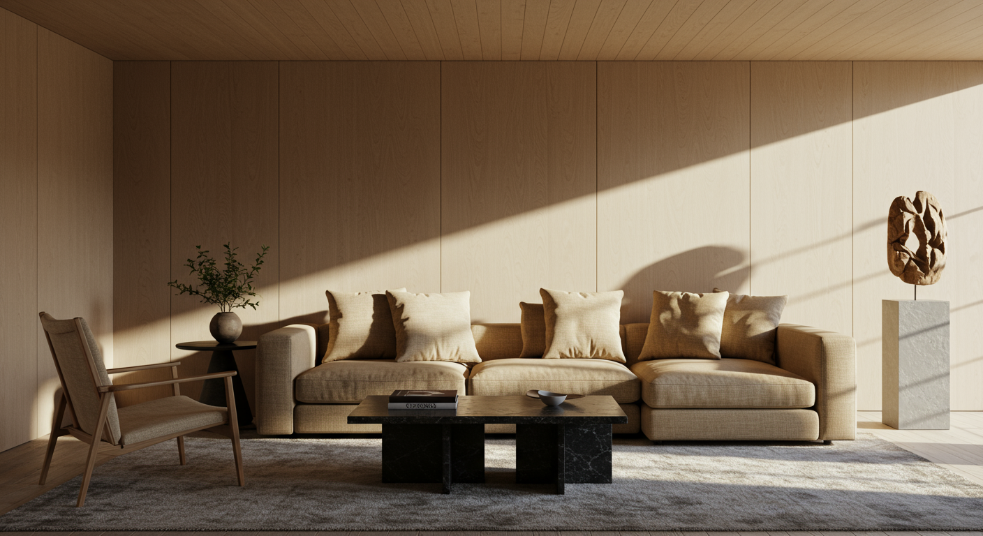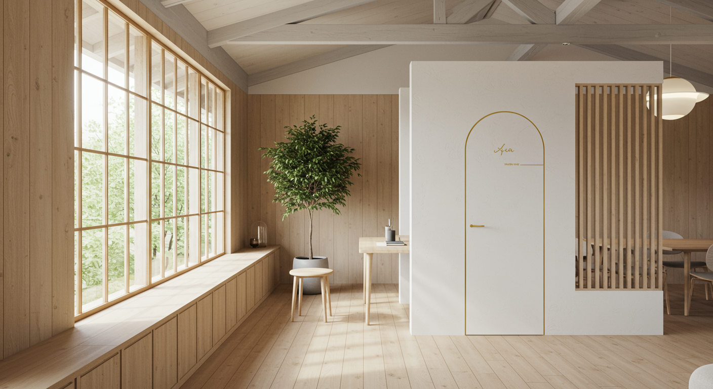Oak walls add a soft touch—but they’re actually flooring repurposed as wall paneling (something you can definitely try in your own home). “In each showroom, there are generally three materials [and colors] that inform our textural palette: white oak, polished concrete, and crisp white,” Fried says. “In our Los Angeles space, since we had already envisioned the concrete foundation and the white partitions, we ended up using the hardwood flooring on the walls.”
