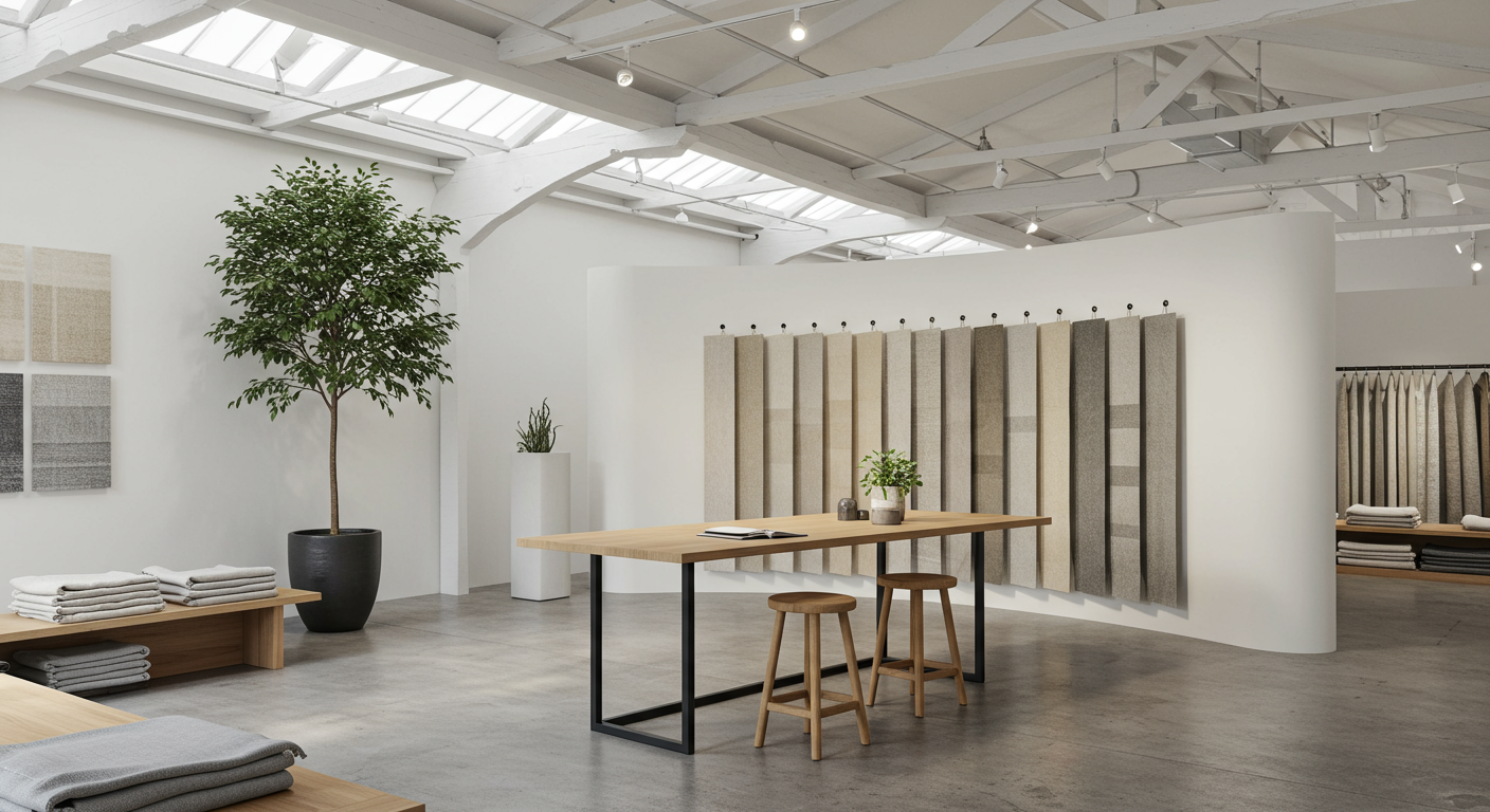 With its new Los Angeles showroom, Australian floor-covering brand Armadillo has come to the rescue via a sweeping space with a snaking partition that displays its dozens of eco-friendly offerings, from jutes that won’t shed to silk and wool weaves in calming sunset shades.