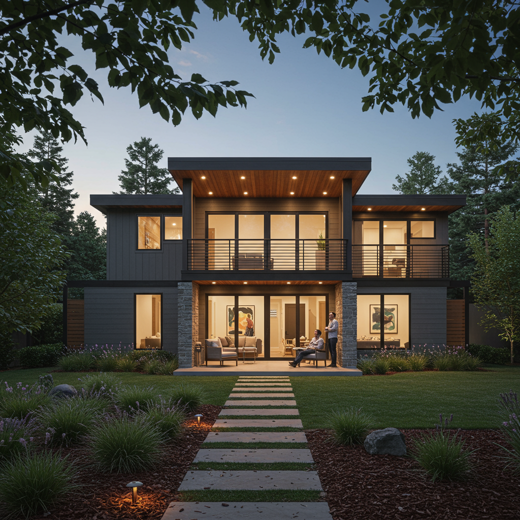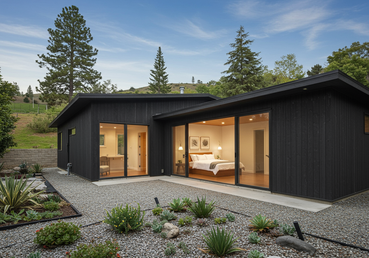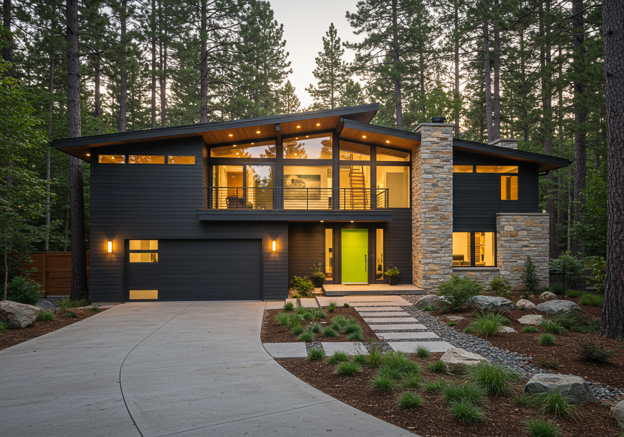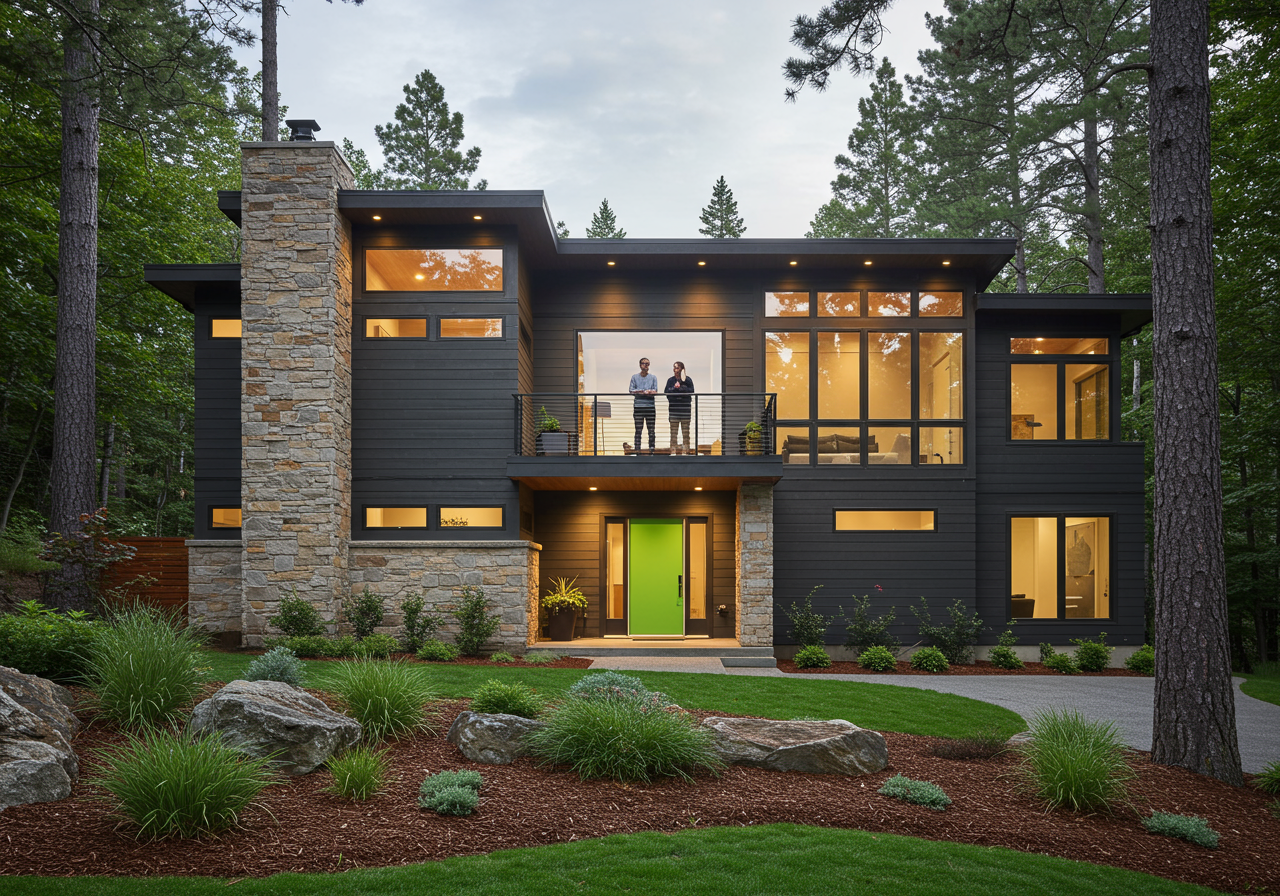 The exterior is a juxtaposition of dark tones which contrast the lights in the design of the residence. However, the home is not only aesthetically pleasing but also wildly sustainable.