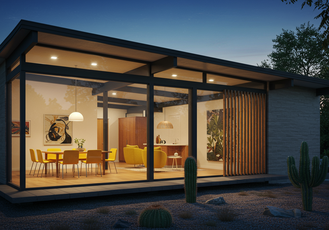 Featured in architectural magazines and designed by Soheil Nakshab, this sustainable home does not only pay homage to midcentury modern aesthetics but is also a LEED Certified Gold House.