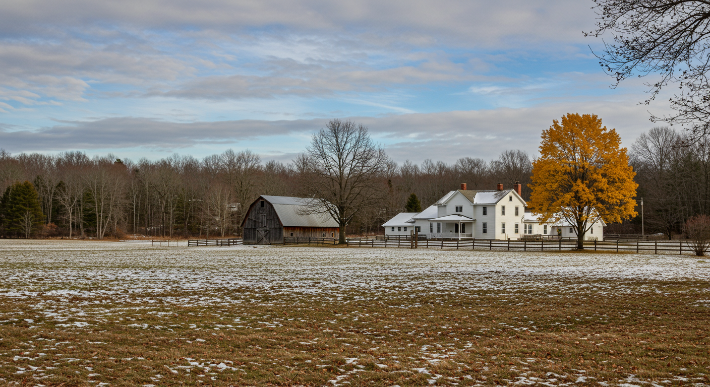 Tucked away on a quiet road in Dutchess County, New York, sits an unassuming white barnlike structure, built with a previous century in mind. The 5-bedroom, 3½-bathroom house, with its simple white columned porch and unspoiled view of Stissing Mountain, seems like the perfect encapsulation of 19th-century charm. But it holds a secret: It was actually built in 2005.