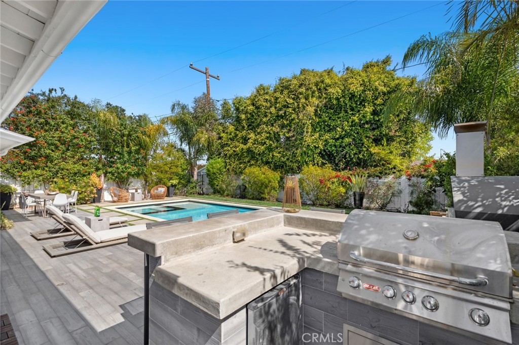 Among the well-appointed and comfortable bedrooms, your generous primary suite is a secluded sanctuary, featuring dual closets, direct patio access, and a luxurious ensuite with a steam shower. Outside, the resort-inspired backyard is nothing short of spectacular--dive into the saltwater pool, unwind in the spa, sunbathe on the Baja ledge, or converse around the raised firepit. A custom pizza oven, BBQ grill, and bar seating make alfresco get-togethers unforgettable.